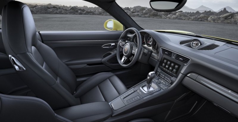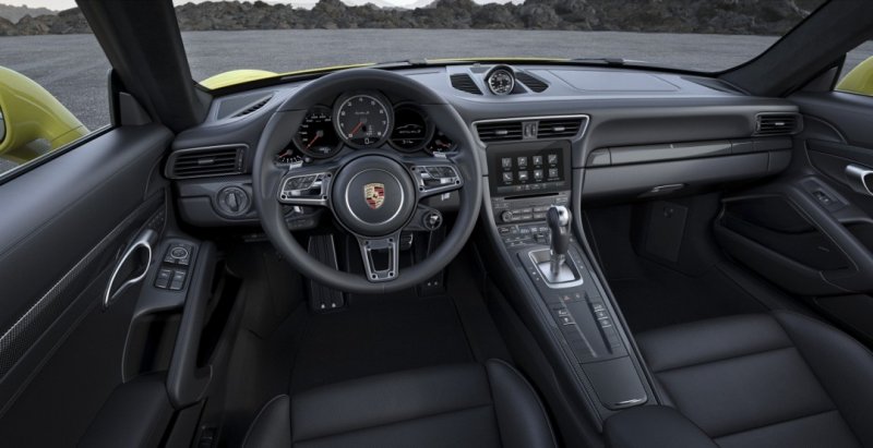 В салоне обновлённого купе и кабриолета Porsche 911 Turbo и 911 Turbo S 2017 модельного года появился новый спортивный руль, информационно-развлекательная система Porsche Communication Management и стандартная акустическая система Bose. Подробная информация о новинках будет оглашена во время мировой премьеры на автосалоне NAIAS-2016 в Детройте. Уже сейчас известно, что базовая версия обновлённого купе Porsche 911 Turbo 2017 модельного года будет предлагаться в Германии по стартовой цене от 174 669 ?. Продажи новинки стартую в январе 2016 года.