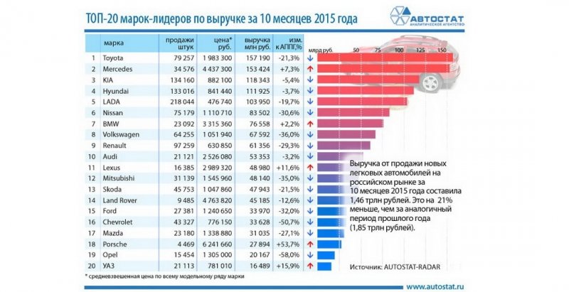 Стали известны автобренды, заработавшие больше всех в России в 2015 году - «Автоновости»