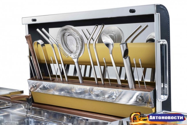 Интересное пополнение в продуктовой линейке Rolls-Royce — компания подготовила лимитированную серию наборов для приготовления коктейлей. Таких будет всего 15 штук и каждый, думаем, обойдется не дешевле какой-нибудь бюджетной иномарки.Да, цена пока не объявлена, но спецнабор буквально кричит о “Роллс”-прайсе всем своим видом — вы только зацените отделку металлом и деревом вкупе с брендированной посудой. Придумала это все дизайнер подразделения Rolls-Royce Accessories Сина Мария Эггл при поддержке спецов британской фирмы Dorchester Collection London Hotels.