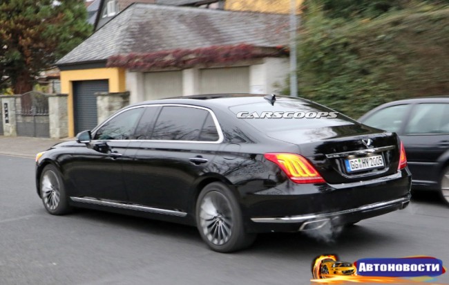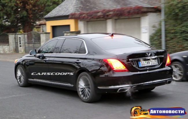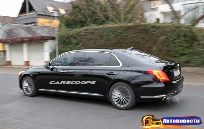 Вы ведь уже в курсе, что такое теперь роскошь по-корейски? Да, мы о премиальном суббренде Hyundai — Genesis — и ее первом представителе G90 в частности. Что ж, скоро узнаете, каков сверхлюкс в исполнении Hyundai, — компания вовсю готовит удлиненную лимо-версию четырехдверного “Джи”.Весомые доказательства, они же шпионские снимки тестовой машины, оказались в распоряжении наших коллег с carscoops.com. Лимо попался вообще без какого-либо камуфляжа на дорогах Германии и продемонстрировал ну очень длинные задние двери вместе с широкими вставками в районе центральных стоек — судя по всему, дополнительные сантиметры будут оформлены именно таким образом. Кстати, сантиметров этих должно быть не менее двадцати, что означает габаритную длину свыше 5,4 метра (стандартный G90 вымахал до 5205 мм).
