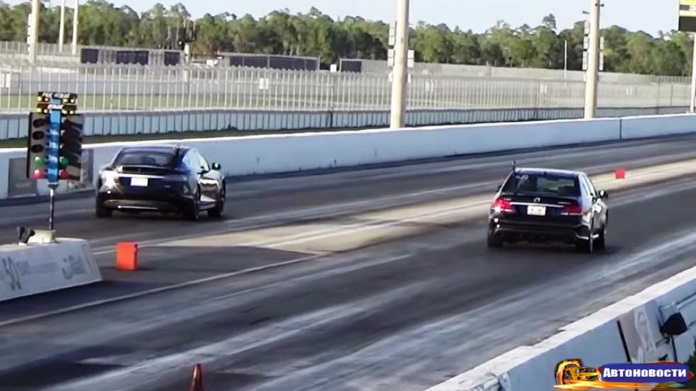 Ненормальная Tesla Model S P85D бьется с "Мерседесом" E 63 AMG S