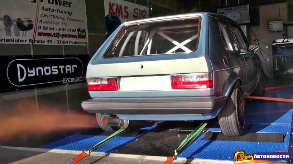 Возможно, вы уже встречали это чудище на просторах Сети — это работа Boba Motoring, выпустившей не один крэйзи-"Гольф". Вернее это замаскированная под первый VW Golf 1056-сильная пуля с двухлитровым мотором на борту. И с добротной свистелкой Garrett. И с 6-ступенатой механикой. И с полным приводом до кучи. Гремучую смесь дополняют 17-дюймовые колеса от Porsche, обутые в полуслики Toyo, а на практике она означает 300 км/ч максималки и, среди прочего, возможность разорвать в клочья суперспортивную Yamaha R1.