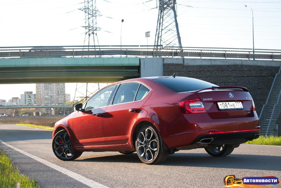 Казалось бы, чем может удивить Octavia RS пилота, который до этого месяц тестировал Golf GTI? Та же MQB-платформа, одинаковые моторы и 6-ступенчатые роботы DSG… И “просто” Octavia в нашем Гараже уже была. Как говорится, те же яйца, вид сбоку.Однако сюрпризы начались еще до начала теста. Хот-хэтч из Чехии продается у нас дороже немецкого! И не на пять копеек, а на весомые сто тысяч рублей. А если сравнивать автомобили с механикой – так на все сто пятьдесят! За эти деньги Skoda добавляет “в базу” поворотный свет, парковочные датчики и… и все. С опциями, кстати, разница в цене тестовых машин оказалась еще больше, хотя эта Octavia RS была без камеры заднего вида, адаптивного “круиза”, люка…Второй раз меня удивили, когда дали-таки ключ от автомобиля. Дали со словами: “Одно колесо компания оплатит. Все остальные – за ваш счет”. Чего это они?О боги маркетинга! Я сначала не поверил собственным глазам – тестовая Octavia RS оказалась на 19-дюймовых (!) колесах. Еще раз: 19 дюймов с шинами размерности 235/35 R19. Такие же, например, ставят на Aventador, на переднюю ось. Кстати, дизайн дисков одному мне навевает мысли о Lamborghini? И не ищите их в конфигураторе – “девятнадцатые” катки Skoda не предлагает даже немцам.Octavia RS на таких колесах – как дочь генерала ФСБ или местного авторитета. И красивая, чертовка, и обеспеченная, но ухаживать за ней как-то боязно. Одно неверное слово или движение – и ты попал. Тем более на наших весенних дорогах, с ямами и попытками их ремонта.Конечно, рулится на таких катках машина острее и точнее, чем Golf GTI, для которого 17 дюймов – российский максимум. Но определяющим это преимущество будет разве что на треке. А в обычной езде “девятнадцатые” колеса добавляют и жесткости, и шума, и ненужной тяжести на руле.