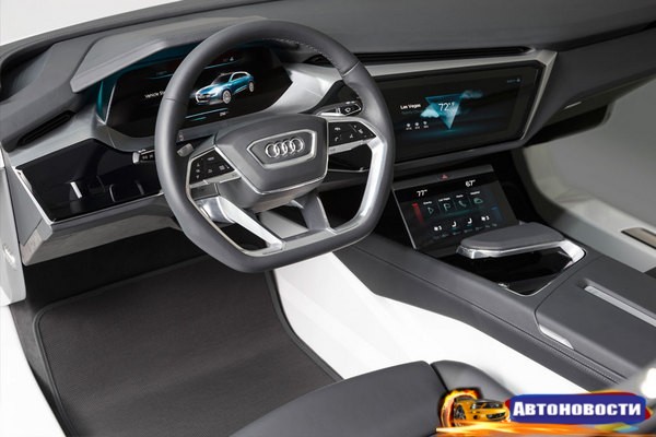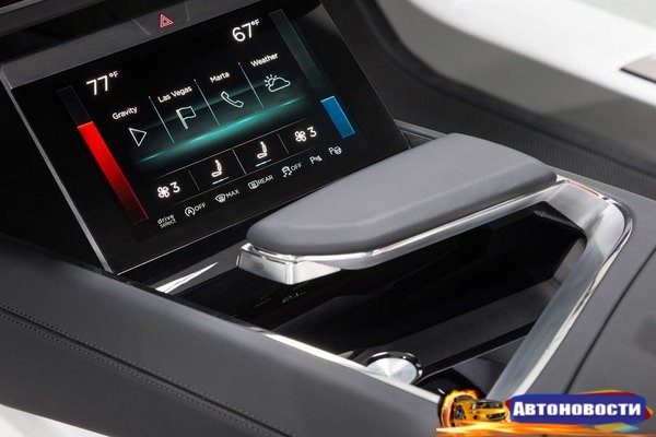 В дополнение, Audi разместила по центру приборной панели два тачскрина: на верхний выводятся навигационные подсказки и прочая информация, а на нижнем расположены виртуальные кнопки управления, мультимедиа, климат-контролем, подогревом сидений. Места для привычной шайбы-контроллера MMI в интерьере будущего не предусмотрено.
