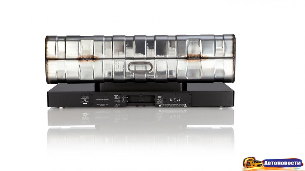 Часть выхлопа боевой двухдверки стала музыкальной системой 2.1. Усилитель, как и колонки, расположены внутри “банки” и качают на 200 ватт, а обрабатывает звук хитрая система улучшения качества DTS TruSurround. Еще у нового творения Porsche Design есть LED-дисплей, и пульт дистанционного управления, а также возможность подключения отдельного сабвуфера и поддержка Bluetooth-соединений.