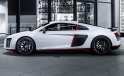 Собственно, и в остальном спецверсия похожа на самую крутую R8 после программы персонализации. Есть лазерные фары и красивые 20-дюймовыми колесами, а в обвесе и на кузове вообще появились новые карбоновые детальки. Вместе с тем основной светло-серый цвет удачно разбавлен черными вставками и красными акцентами. Также R8 selection 24h может похвастать спортивным выхлопом, проекцией эмблем “R8” на дороги при открытии дверей и обилием алькантары в салоне.