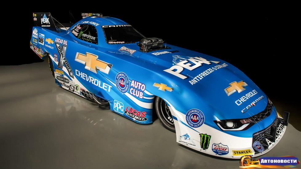 Это тачка Джона Форса. Человека, которого знают самые жареные прямики и вообще все фанаты настоящего дрэга — речь о 16-кратном чемпионе National Hot Rod Association (NHRA). Нетрудно догадаться, что с подготовкой машины ему помогли в Chevrolet. Дополнительных деталей по технике авторы не раскрывают, но подмечают аэропримочки нового снаряда. Например, выверенную форму носа и необычные карбоновые крылья позади. Такие хитрости помогают ему не взлететь.
