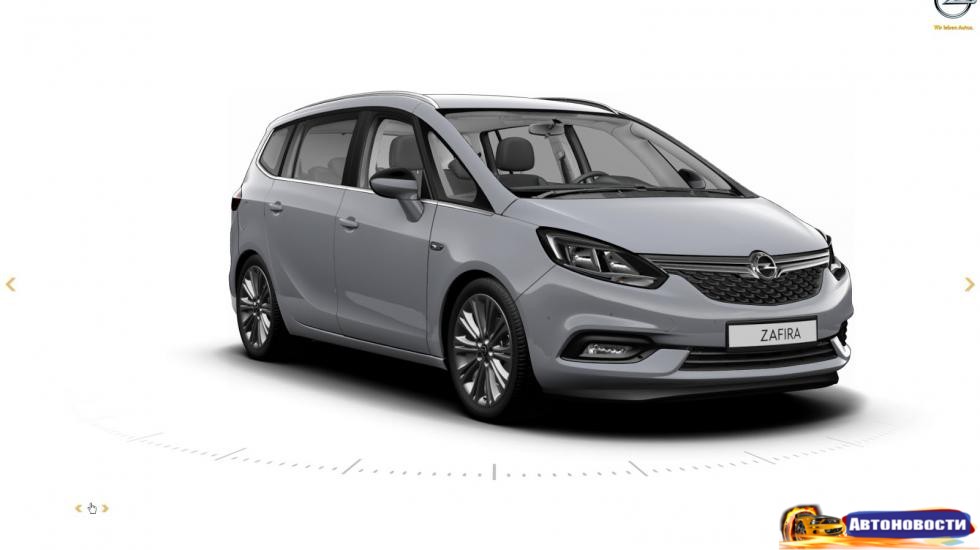 В Сеть попали первые изображения обновленного Opel Zafira – картинки появились в конфигураторе на одном из сайтов компании, но позже были удалены. К счастью, у нас есть скриншоты – вэн освежился внешне и внутри, а также (вероятно) получил пару дополнительных опций.