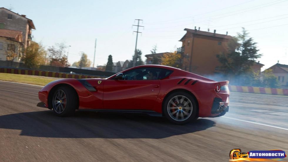 «6,3-литровый V12 “Тур де Франса” выдает 780 л.с., причем пик мощности находится высоко на 8500 об/мин, всего в 400 оборотах от красной зоны. У коробки с двумя сцеплениями специально подобранные для tdf передаточные отношения, а переключения вверх быстрее на 30%, а вниз — на 40%. Разгон до сотни занимает 2,9 с, делает 200 за 7,9 с и продолжает мчать до 340 км/ч...»