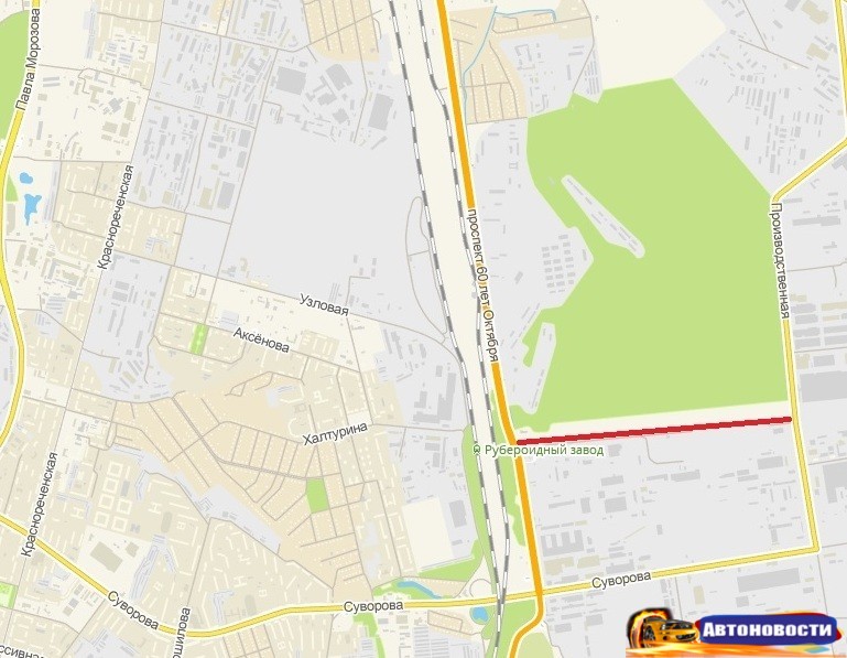 Схема расположения дороги (отмечена красной линией) от ул. Производственной до проспекта 60-летия Октября