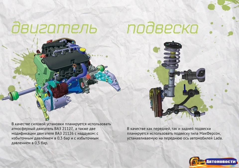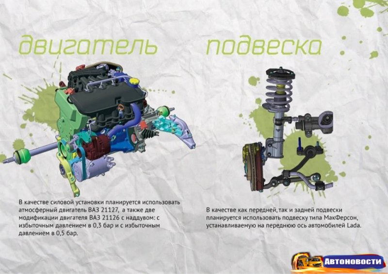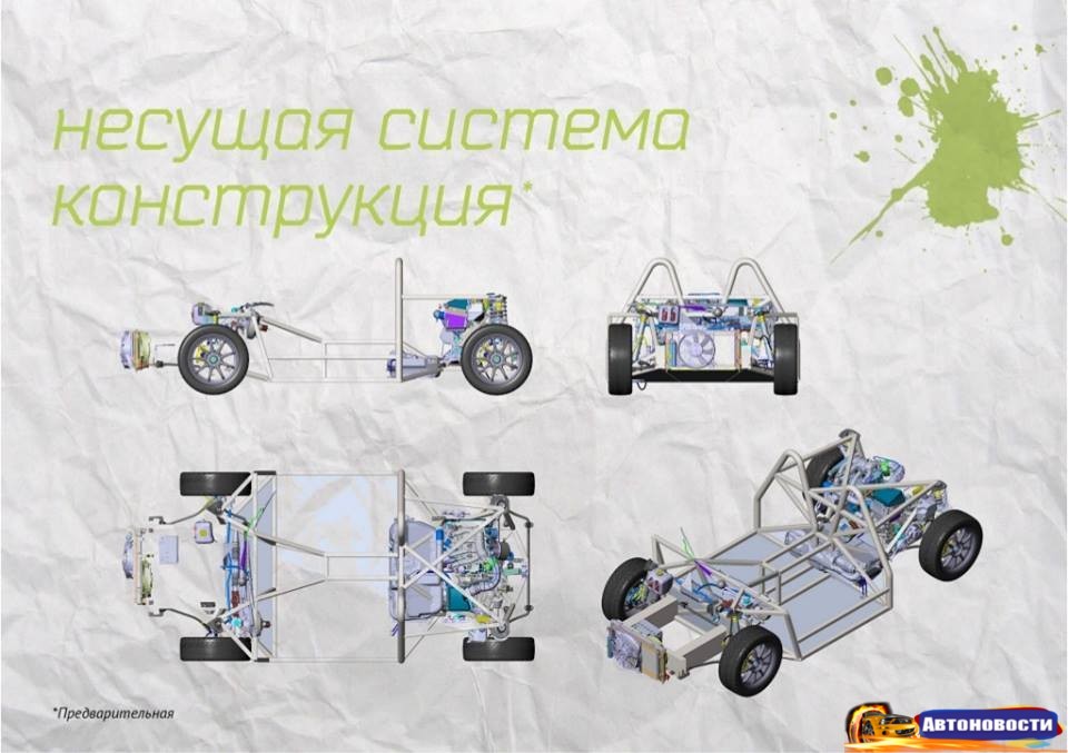 Автомобиль оснащен 106-сильным 1,6-литровым мотором ВАЗ-21127 от Lada Kalina. Все подвески родстера — независимые, конструкции «МакФерсон» (сделаны на основе передней подвески от «Калины»).