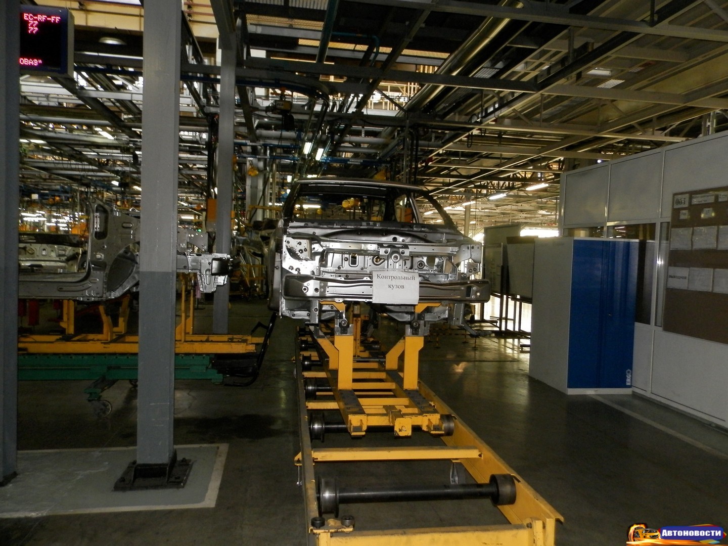 После посещения сварочного производства мне удалось задать давно мучивший меня вопрос. Помнится, до прихода на завод технологий Альянса одним из предметов гордости был высокий уровень автоматизации производства. А на сварке кузовов В0 очень мало роботов и очень много ручного труда — сварка делается ручными клещами. Как так? Это новые технологии или откат к старым? В ответ на мое недоумение заводчанин пояснил, что одним из преимуществ платформы В0 является ее гибкость. На одной базе производится много разных машин — Ниссан Альмера, Рено Логан, Сандеро, Сандеро Степвей, Лада Ларгус, а с недавних пор еще и Иксрей. Все эти модели производятся одновременно, и поэтому гораздо легче и дешевле обучить живого человека, нежели перепрограммировать робота. Не могу сказать, что ответ меня полностью устроил, но другого на данный момент нет.