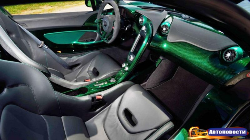 Да, у нас тут адски зеленый P1, что в августе уйдет с молотка аукционного дома Mecum. С серийным номером 000002 и пробегом менее 950 километров. Но интереснее всего тут все же цвет. Между прочим, это никакая не краска. Тачка выполнена карбоном наружу и зеленой ее делает соответствующий пигмент в самом углепластике.