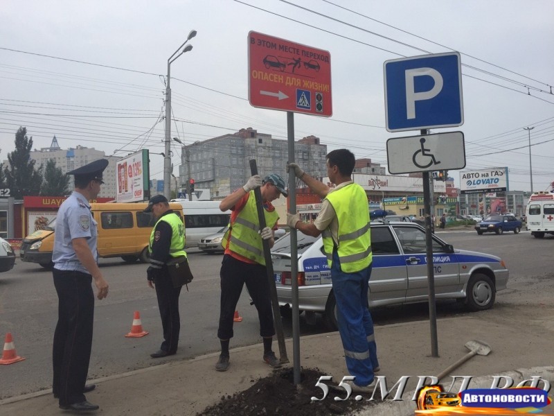 На дорогах Омска продолжают устанавливать предупреждающие таблички для пешеходов - «Автоновости»