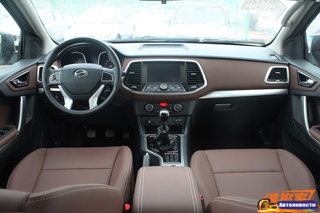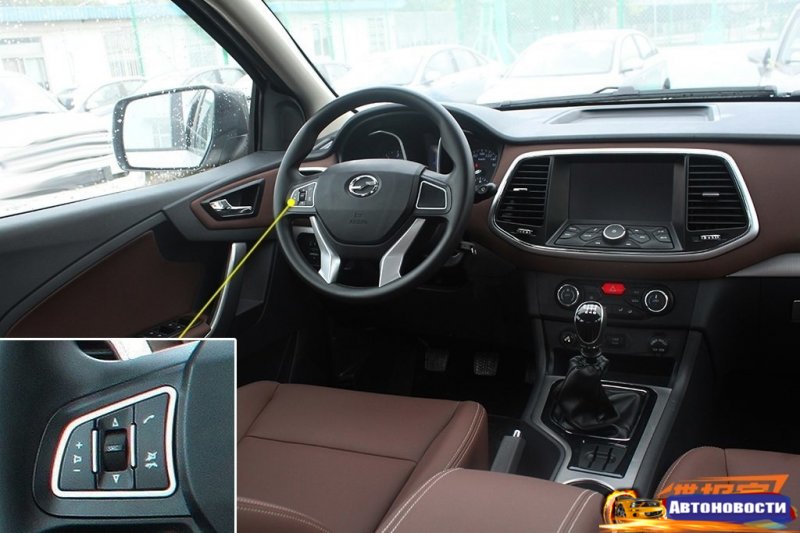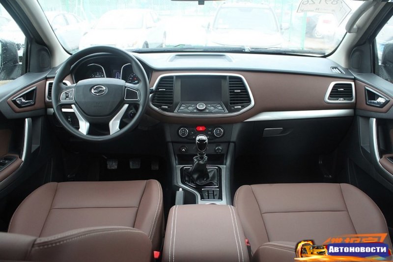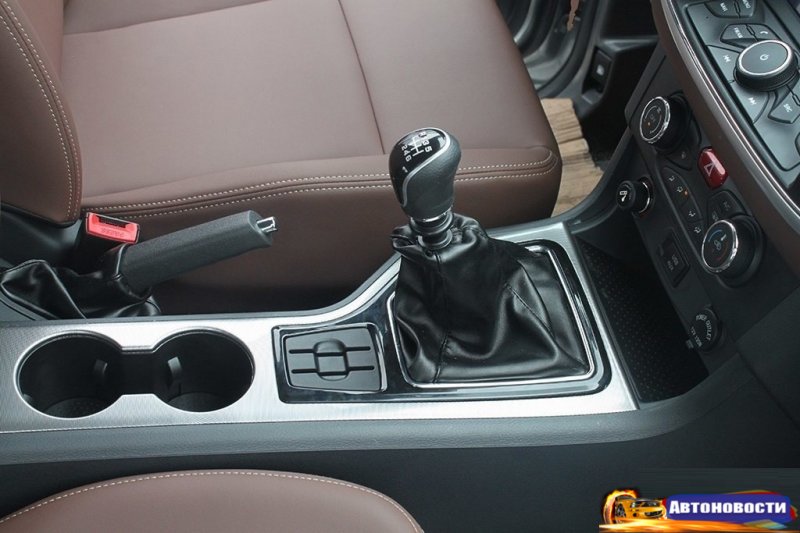 В салоне пикапа — обшитые коричневой кожей сиденья, мультифунциональный руль, мультмедийная система с Bluetooth и сенсорным экраном.