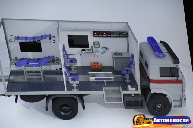 «И мы с "КАМАЗом" разработали техническое задание на производство автомобиля скорой помощи на базе высокопроходимого шасси, но с дополнительным оснащением», — сказал Печеный. Сейчас шасси и фургон уже сделаны, идет оборудование автомобиля.