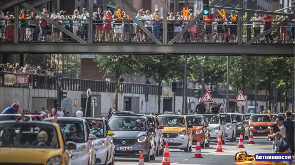 Это называется Smart times — большой (насколько это возможно при габаритах тачек) слет “Смартов”, что проводится с 2001-го. Каждый год фанаты компактов собирались в разных городах и странах, а в 2016-м выбор впервые пал на Германию, точнее — на Гамбург. И этот фест стал рекордным — на 1635 машин.
