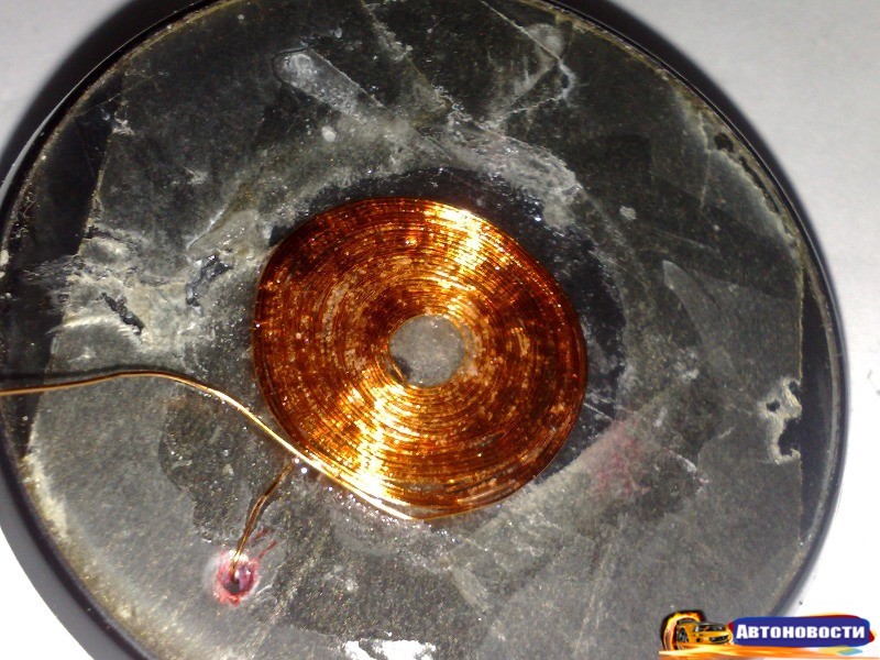 Приемный контур — мотал целых полчаса. Катушка плоская, состоит из 25 витков провода 0,3-0,4мм. Контур удобно мотать на небольшом куске пластмассы, витки постепенно нужно укрепить при помощи суперклея, работа достаточно грязная и долгая. После намотки отделяем контур от пластмассового стенда, на который он был намотан. Это удобно делать при помощи монтажного ножа или лезвием.