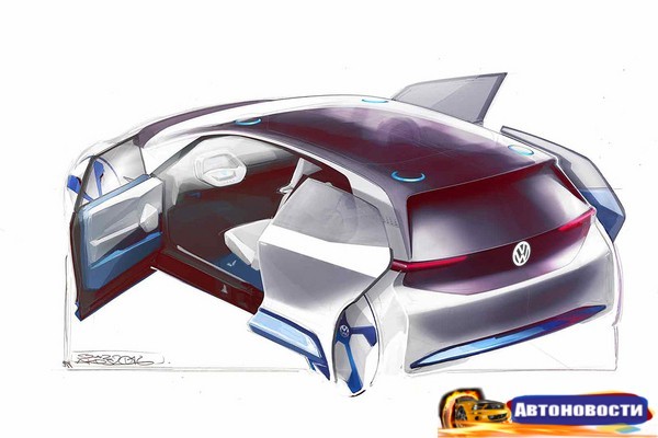 Немцы продолжают приоткрывать завесу тайны о том, каким именно будет новый электромобиль марки. В преддверии премьеры концепта электрокара на автосалоне в Париже фольксвагеновцы опубликовали скетчи прототипа. Судя по рисункам, у немцев получился приземистый автомобиль, рассчитанный минимум на четверых седоков и имеющий сдвижные задние двери. Перед машины оказался покатым и коротким, поскольку ему не требуется массивный двигатель внутреннего сгорания, установленный под капотом. По этой же причине у машины отсутствует традиционная решетка радиатора.