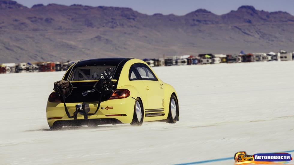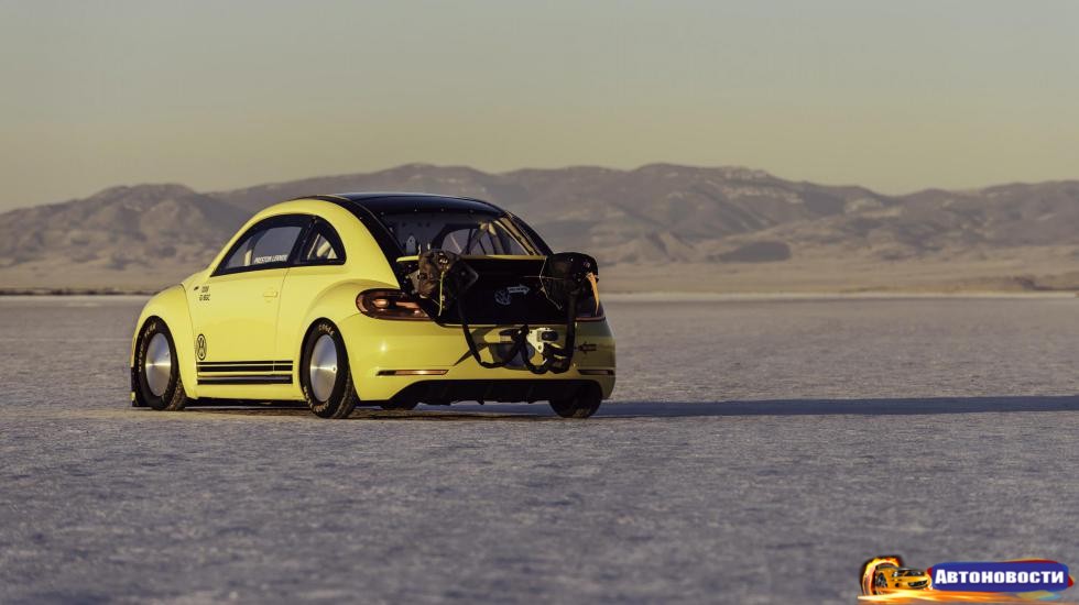 Рекорд для Beetle (точная цифра: 328,195 км/ч) установила сумасшедшая машина разработки THR Manufacturing. Здесь использован двухлитровый турбомотор (EA888 TSI) с усиленными поршнями и шатунами, а также прочими серьезными апдейтами. Двигатель выдает 550 лошадей и 570 Нм крутящего момента.