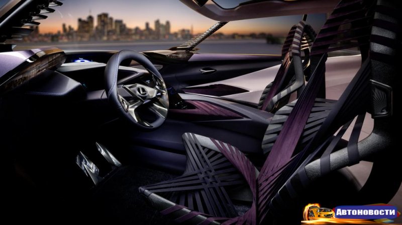 По начинке информации никакой нет, так что концепт в основном о стиле. Хорошо, что его тут много снаружи — лично нам нравится микс офф-роуд-штучек и космолета — и внутри, где, кажется, каждый элемент похож на украденный из музея современного искусства экспонат. О, и обратите внимание на передние сиденья — это те самые “идеальные” кинетические кресла с необычной конструкцией паутина-стайл и опять же необычными материалами, изготовленными на основе синтетического паучьего шелка. Такие, говорят, намного удобнее и даже полезнее традиционных. Задним же пассажирам положен мягкий диван (заметили, как визуально разделен салон на две части?).