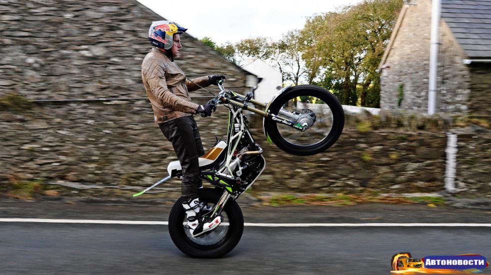 Вы, должно быть, уже знаете его — Дуги Лампкин нашумел в мототриале так, что там до сих пор никого не слышно (шутим, конечно, но с известной долей шутки) — и вряд ли удивитесь, узнав о каком-то новом сверхтрюке в его исполнении. Впрочем, это было действительно сложно даже по его собственному мнению — Лампкин одолел знаменитую трассу острова Мэн на одном колесе!