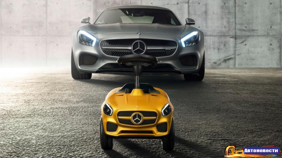 Это действительно опасная вещь: педалей и сопутствующих систем вроде тормозов не предусмотрено. Впрочем, как и двигателя, так что особо переживать за детишек не придется (если только ваша фамилия не Болт). Что есть, так это руль и нарядное оформление – на выбор будут предложены серый AMG GT с красным “салоном” и желтая модель с обилием черных элементов. Кроме того, здесь рабочая оптика!