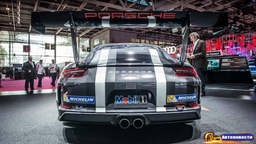 Обновление дорожного 911 нынешнего поколения добралось и до боевых машин Porsche. У GT3 Cup четырехлитровый атмосферник мощностью за 480 сил, сниженная на 220 килограммов масса и... двухметровое крыло позади. Отпад