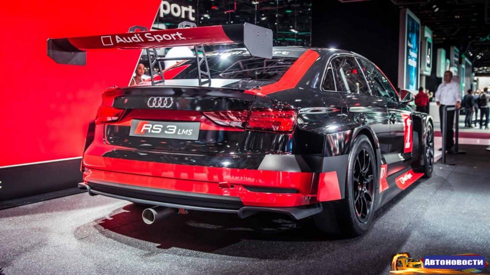 Только-только представленный седан RS3 прибыл сразу же с гоночным собратом LMS. Тачка будет биться в кузовном чемпионате TCR (можете попробовать и вы – были бы 100 евротысяч и гоночная лицензия), и биться эффектно – при такой-то внешности
