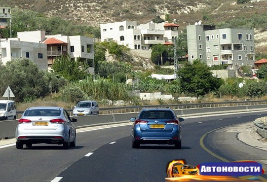 Второй автомобиль - популярная в Израиле Toyota Auris, имеющая 1.8-литровый атмосферный бензиновый двигатель, развивающий мощность 99 лошадиных сил при 5200 оборотах в минуту и крутящий момент 14.5 килограмма на метр при 2400-4400 оборотах в минуту. Электродвигатель Toyota Auris добавляет мощность 80 лошадиных сил и 21.1 килограмма на метр крутящего момента. Совокупная мощность высчитывается нелинейно и составляет порядка 136 лошадиных сил. Вес машины - 1335 килограммов.