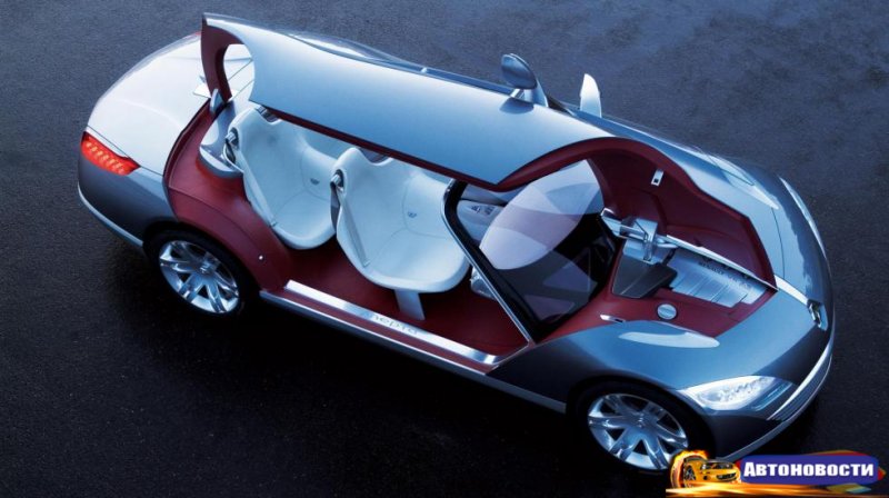 В 2006 году на Парижском автосалоне Renault представила, несомненно, один из самых смелых концептов в истории — четырехместный кабриолет с дверьми-крыльями. Как такие двери удалось использовать при отсутствующей крыше? Очень просто (на самом деле совсем нет) — оные представляли собой чуть ли не половину кузова, с точками крепления перед лобовым стеклом (в виде части капота) и прямо за головами задних пассажиров. Еще были более чем 420-сильный V6 (0-100 км/ч за 4,9 секунды) и карбон в конструкции
