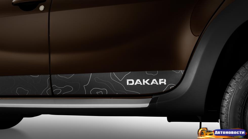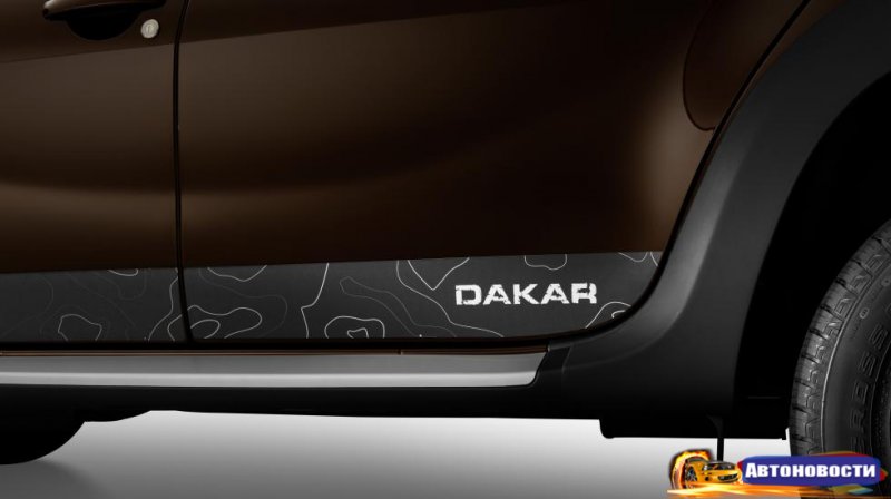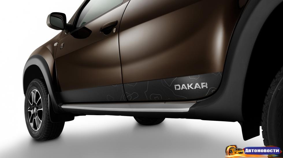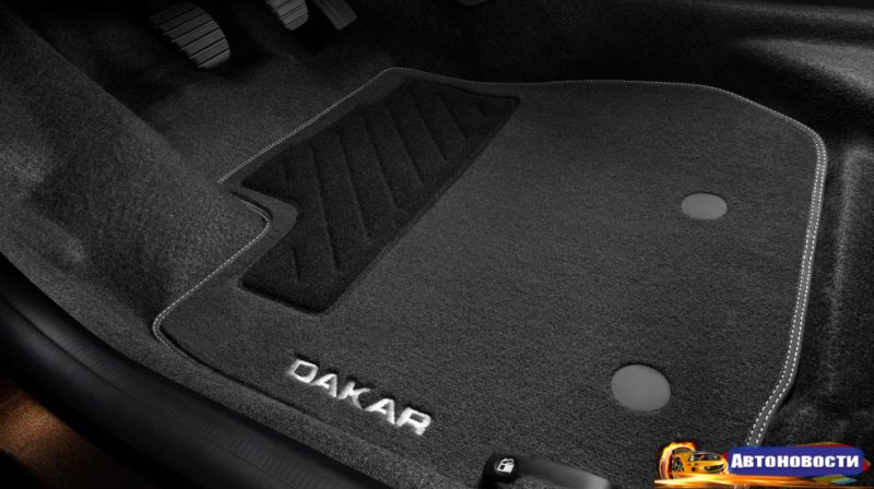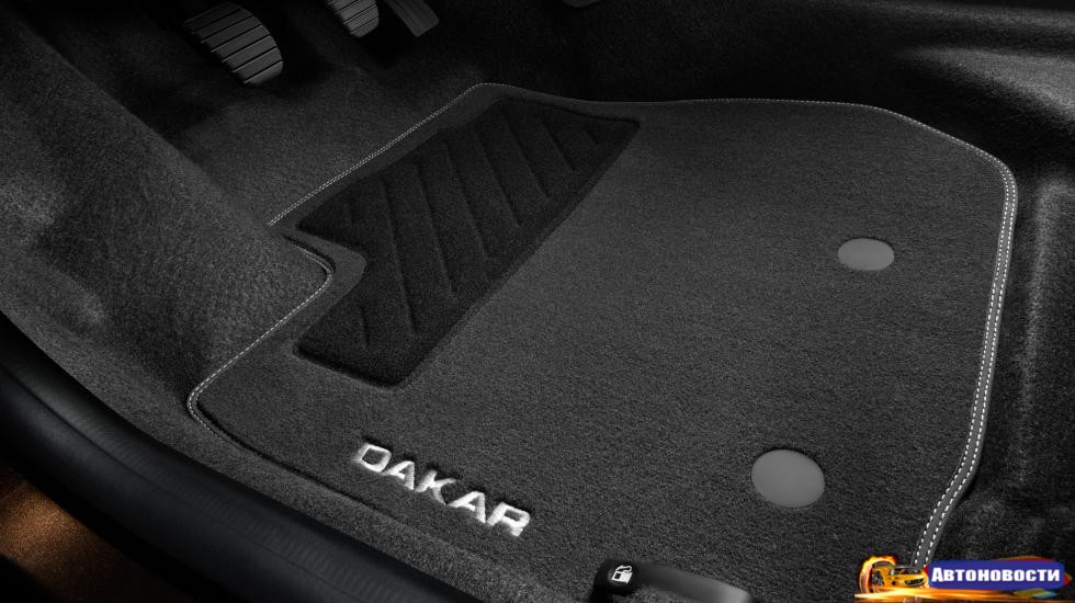 Чем же любопытен Duster Dakar? Ну, ничем особым, если честно. Машинка получила новые элементы внешнего дизайна и интерьера, подчеркивающие внедорожный характер автомобиля. Это защитные расширители колесных арок, хромированная защитная накладка "Dakar" на задний бампер, 16-дюймовые легкосплавные диски Black Thema, стикеры на двери с надписью "Dakar", бейджик "Dakar" на передних дверях, а также хромированные накладки на пороги дверей и текстильные коврики с надписью "Dakar".