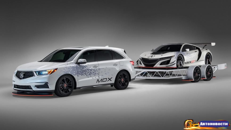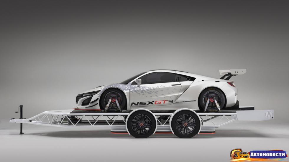 Гуд ньюс для всех, кто планирует посетить большой тюнинг-фест SEMA (будет в середине месяца): в Лос-Анджелес едет боевая Acura NSX GT3. Машина редкая и дорогая, да еще и запрещенная к использованию на дорогах общего пользования. Поэтому придется полюбоваться еще и на этот ультраспортивный трейлер для перевозки автомобилей и стилизованный кросс MDX в качестве буксира.