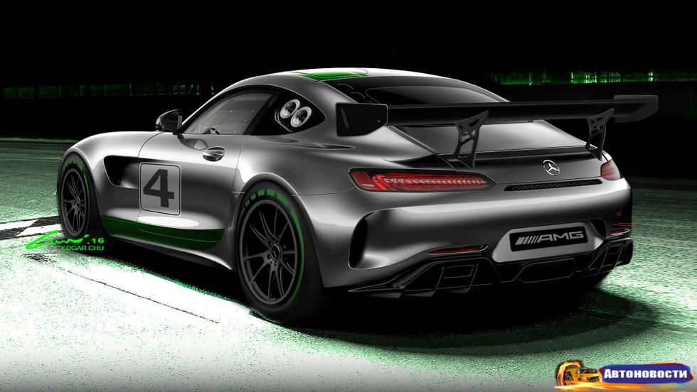 По идее новая трек-версия должна встать между более лютой модификацией AMG GT3 и дорожной версией AMG GT R, на которой, впрочем, тоже можно подолбить поребрики на каком-нибудь "Ахтунгринге". Однако его 585-сильного V8 с сухим картером и 3,6 секундами до сотни для GT4 уже будет маловато. Придется мутить что-то посерьезнее. А нам пока что показали лишь пару картинок.