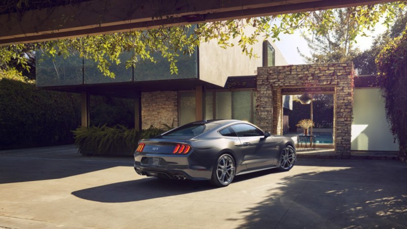 Топовый Mustang ‘2018 оснащается пятилитровым двигателем V8, который получил новую систему впрыска топлива во впускные коллекторы в дополнение к системе прямого впрыска, а также увеличенную с 11:1 до 12:1 степень сжатия. Это позволило повысить максимальные обороты двигателя и мощность, также улучшить топливную эффективность, правда, точные цифры пока не раскрываются. На смену 6-ступенчатому автомату пришел 10-диапазонный агрегат.
