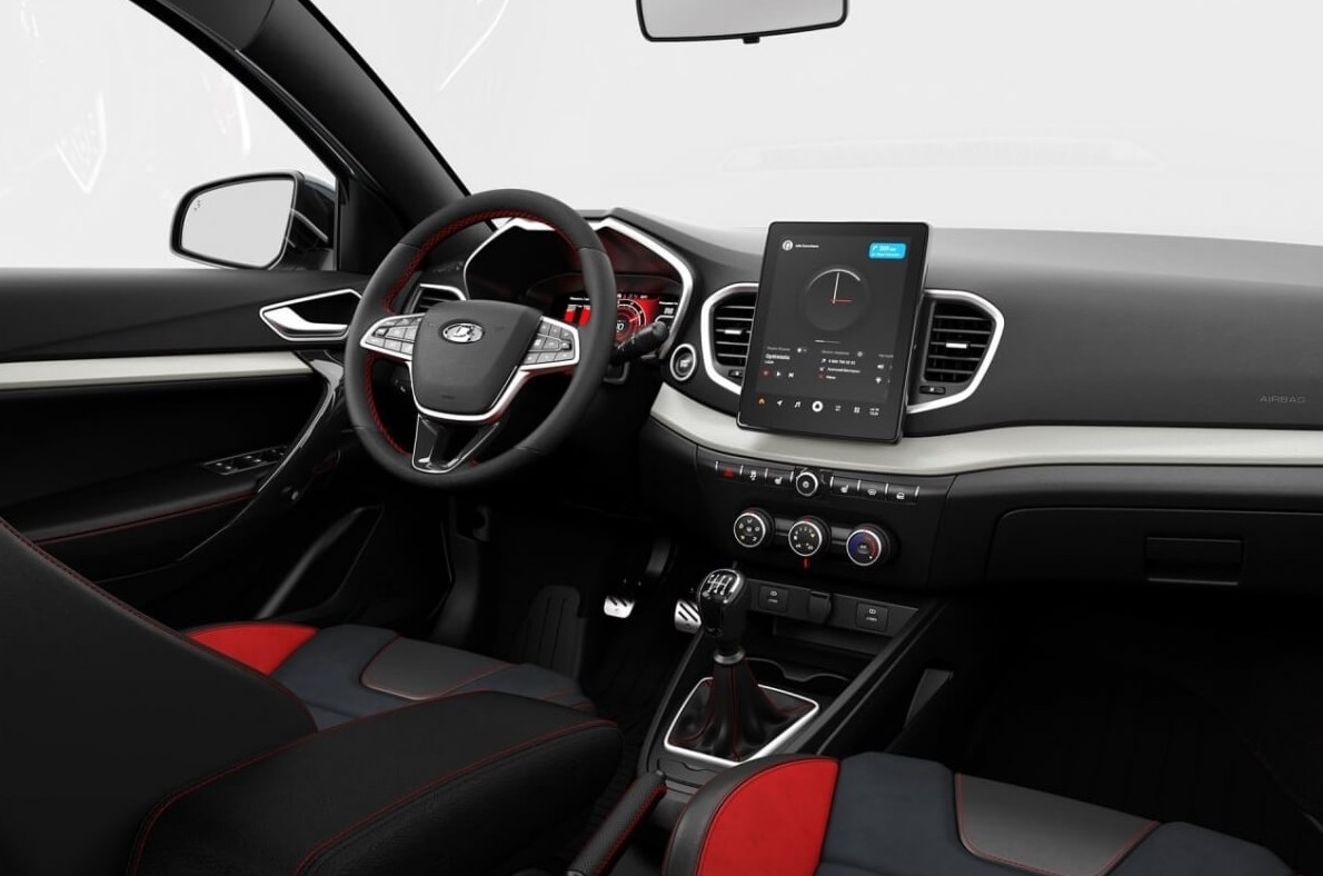 LADA Vesta Sport выпускается в максимальной комплектации «Техно», которая включает полностью светодиодную технику, ABS, EBD, BAS, ESC с возможностью отключения, TCS, систему помощи при трогании на подъеме, систему мониторинга слепых зон, бесключевой доступ, дистанционный запуск двигателя, электростеклоподъемники всех дверей, 17-дюймовые легкосплавные диски, обогрев рулевого колеса и всех сидений, полный обогрев ветрового стекла, передние и задние парктроники, камеру заднего вида, датчики дождя и света, круиз-контроль, кондиционер, аудиосистему с 8 динамиками, а также мультимедийную систему LADA EnjoY Vision Pro с 10-дюймовым экраном и уникальной для рынка 10-дюймовой цифровой комбинацией приборов и др.