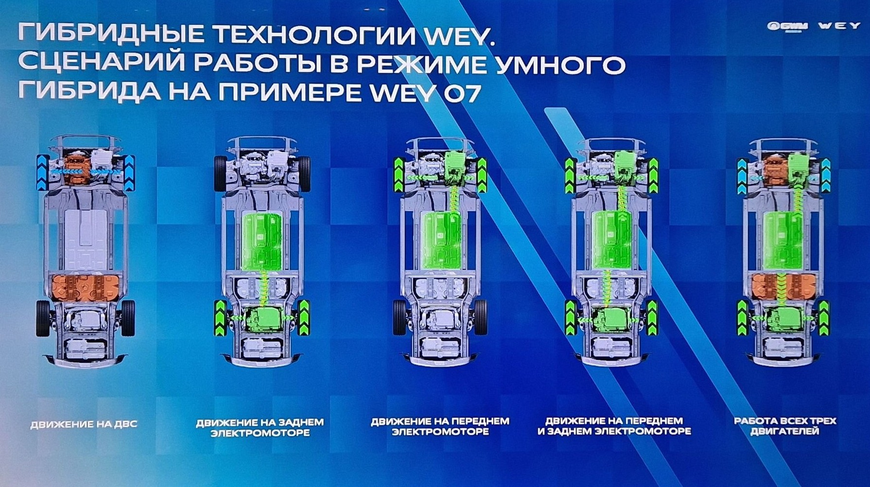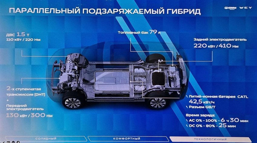 К сожалению, до России эти технологии пока не добрались: даже модели WEY, которые в Китае уже несут на задней двери шильдик Hi-4, у нас предлагают более раннюю гибридную технологию DHT (Dedicated Hybrid Transmission).