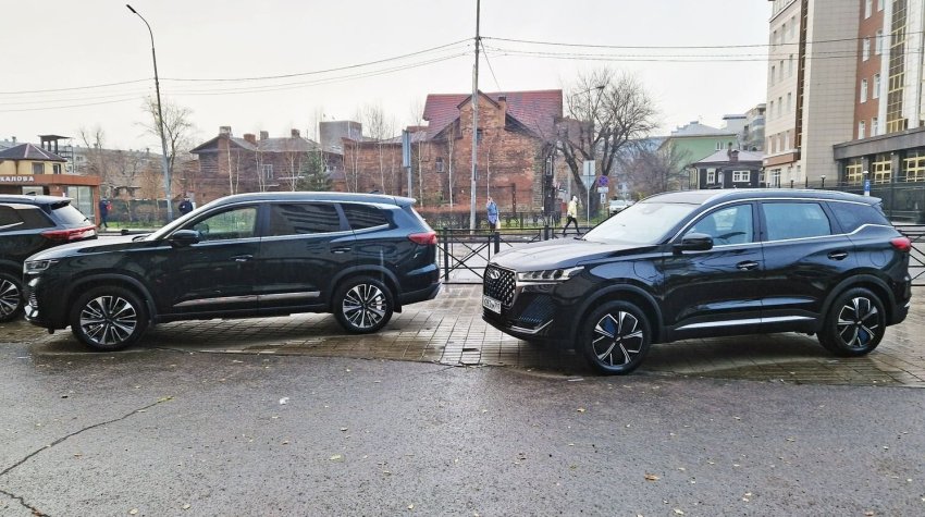 Chery Tiggo 8 Pro Plug-In-Hybrid и 7 Pro Plug-In-Hybrid. От обычных бензиновых машин гибриды можно отличить по дополнительному лючку зарядных портов на левом переднем крыле. Ну еще по оригинальным дискам колес у «младшей» модели