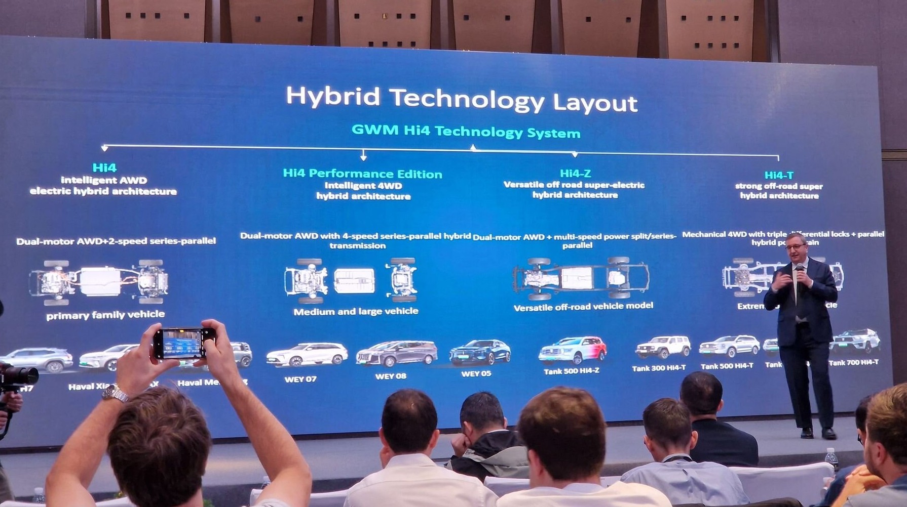 О том, что GWM не спешит следовать в кильватере тотальной электрификации (которая, к слову, уже оказалась фатальной для глобального концерна Stellantis), мы рассказывали еще полтора года назад. А в этом году концерн представил линейку гибридных технологий под общим наименованием Hi4 (Hybrid intelligent 4WD). Всего — пять видов, один из которых с обозначением Hi4-G предназначен для грузовиков. А остальные четыре — для легковых моделей и внедорожников. Теоретически у нас они могут появиться в полном составе. Что же это за технологии?