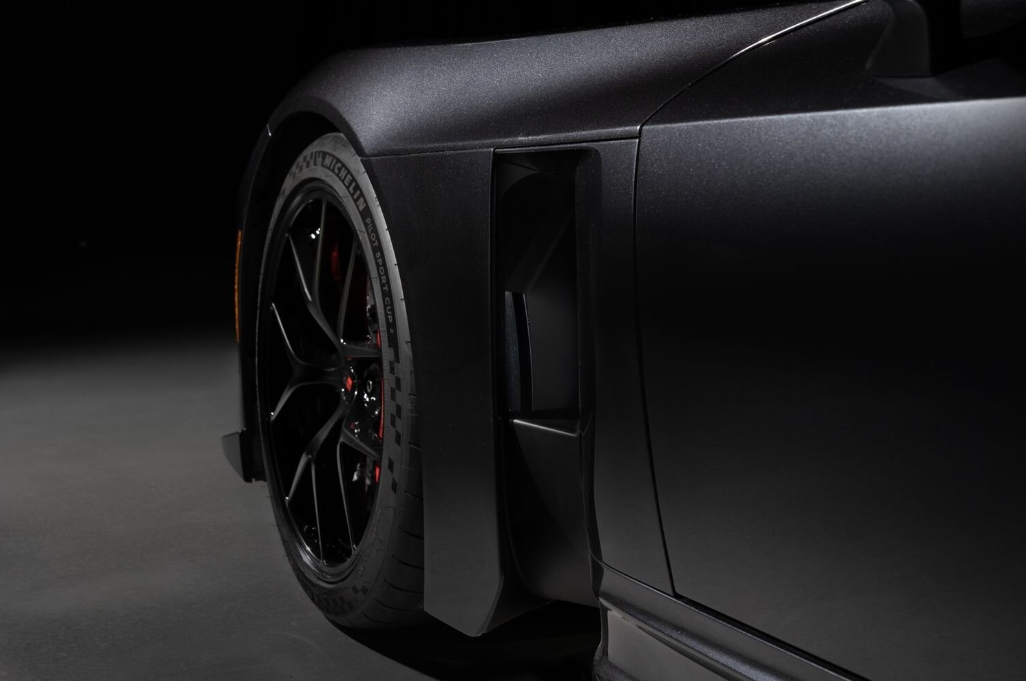 Профиль производит грандиозное впечатление — капот длиннющий, расстояние от колесной арки до двери кажется бесконечным. Задняя часть с хвостиком спойлера навевает воспоминания о Dodge Viper и Mazda RX-7. Разумеется, никаким копированием или плагиатом не пахнет и в помине. Это очевидно при взгляде сзади в три четверти: узкий фонарь от края до края, форма бампера и аэродинамических элементов не даст спутать суперкупе с другими автомобилями.