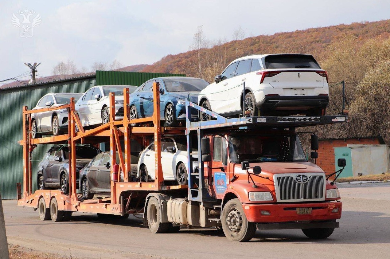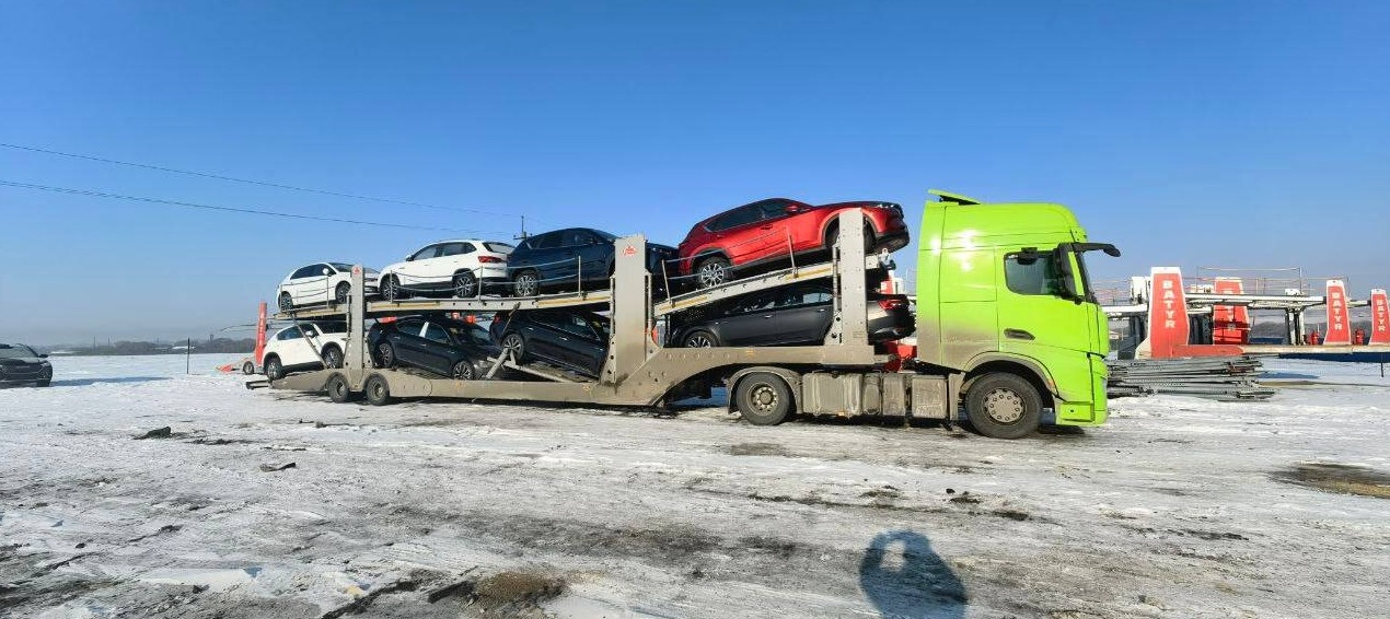 Так выглядит китайский автовоз с машинами для российских клиентов