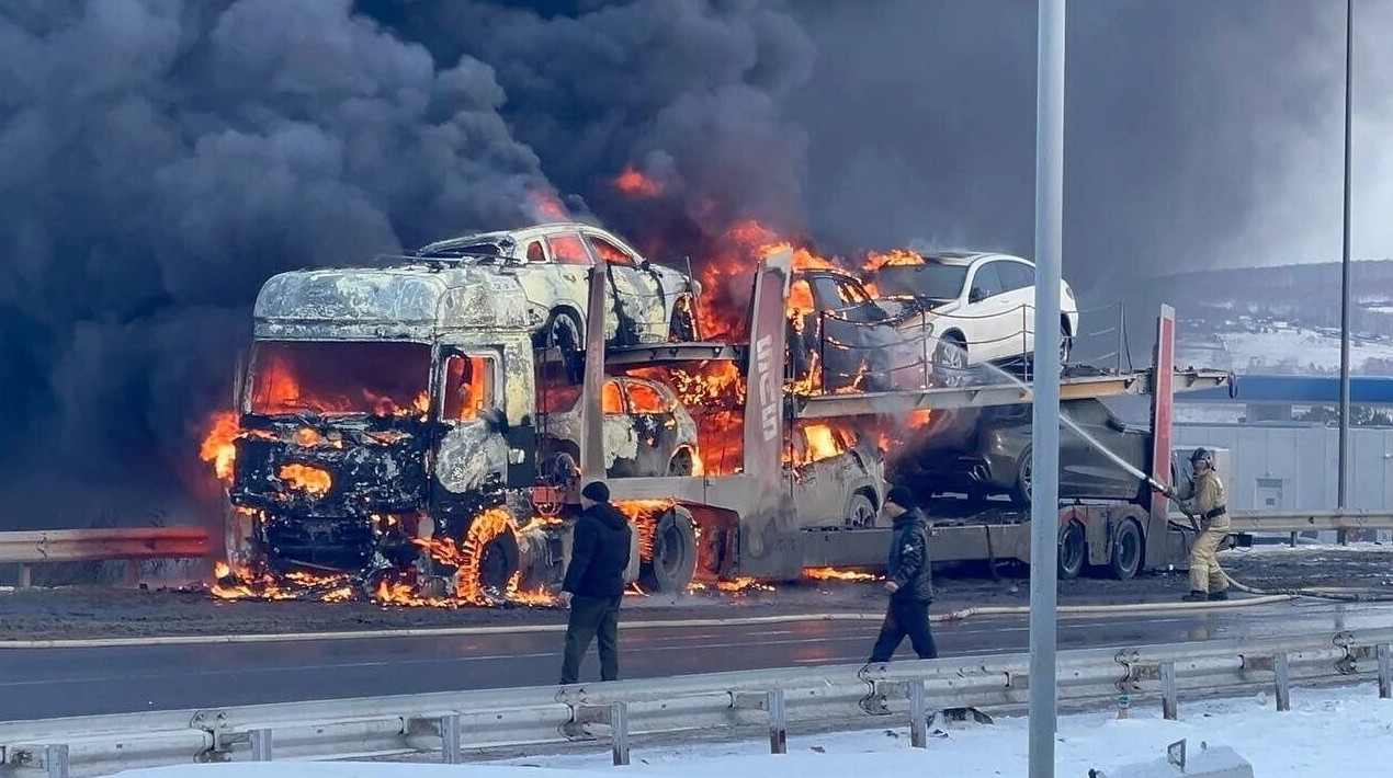Автовоз загорелся на трассе. Этих машин покупатели уже не дождутся, но самые предусмотрительные получат выплату по страховке