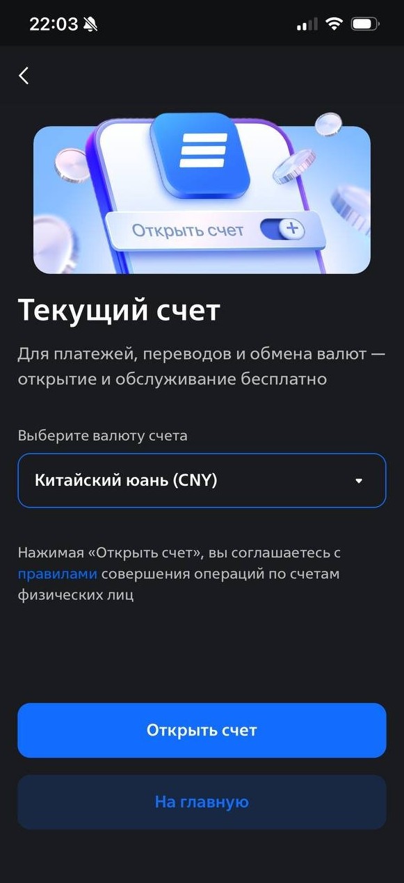 Вот так выглядит счет в юанях в мобильном приложении банка