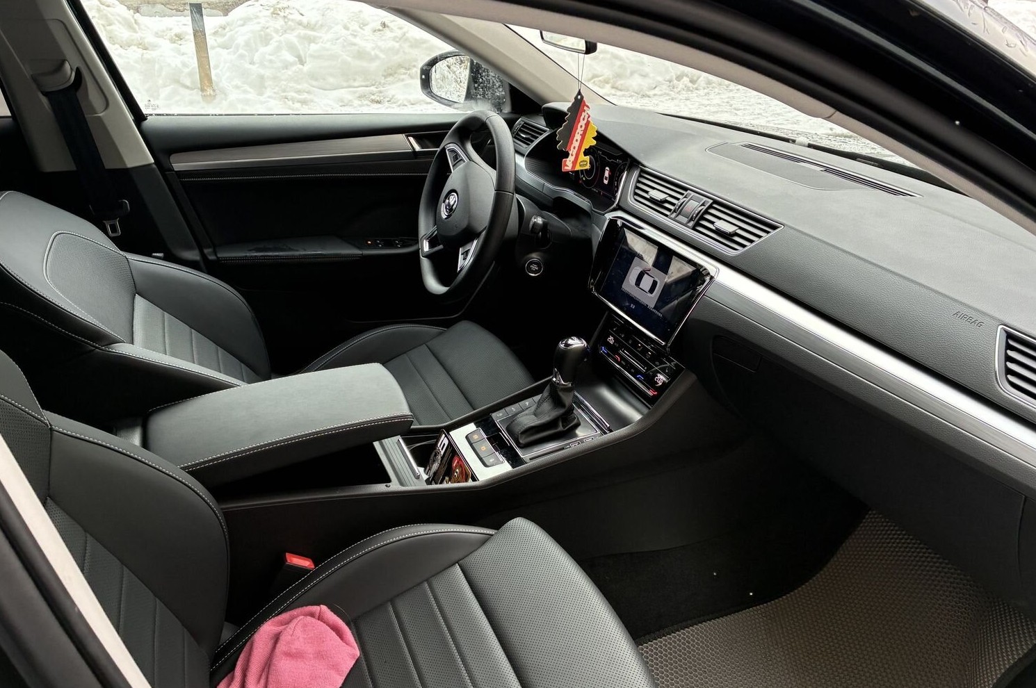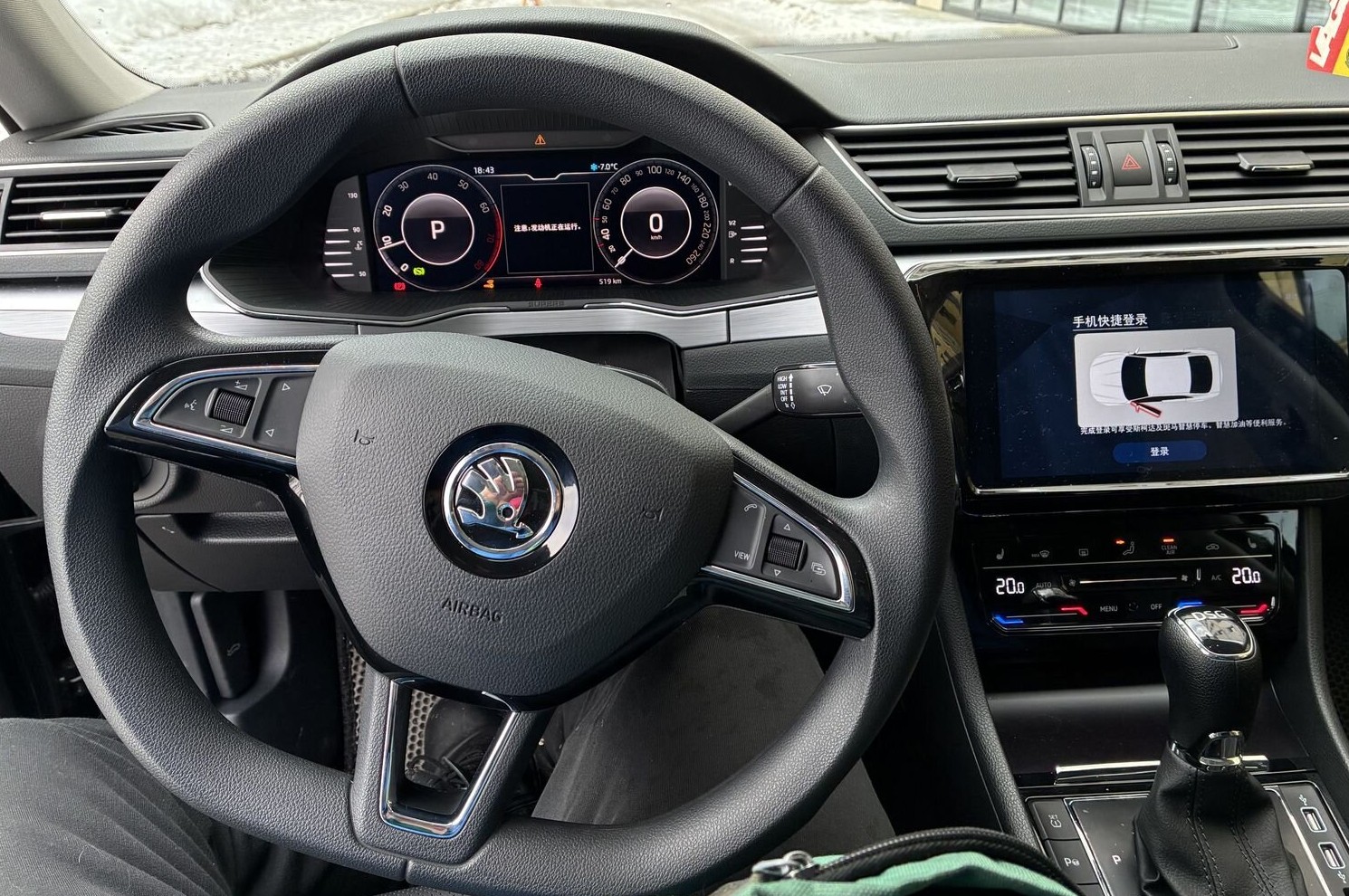 Но если сравнивать с оснащением современных китайских автомобилей, то Superb уже выглядит простенько. Вместо штатной головной магнитолы что-то невразумительное и непрограммируемое, к тому же без привычных сервисов типа Apple CarPlay и Android Auto. Все управление идет на безальтернативно китайском языке. Руль в этой версии пластиковый и, соответственно, без обогрева. Радует, что все это можно доустановить.