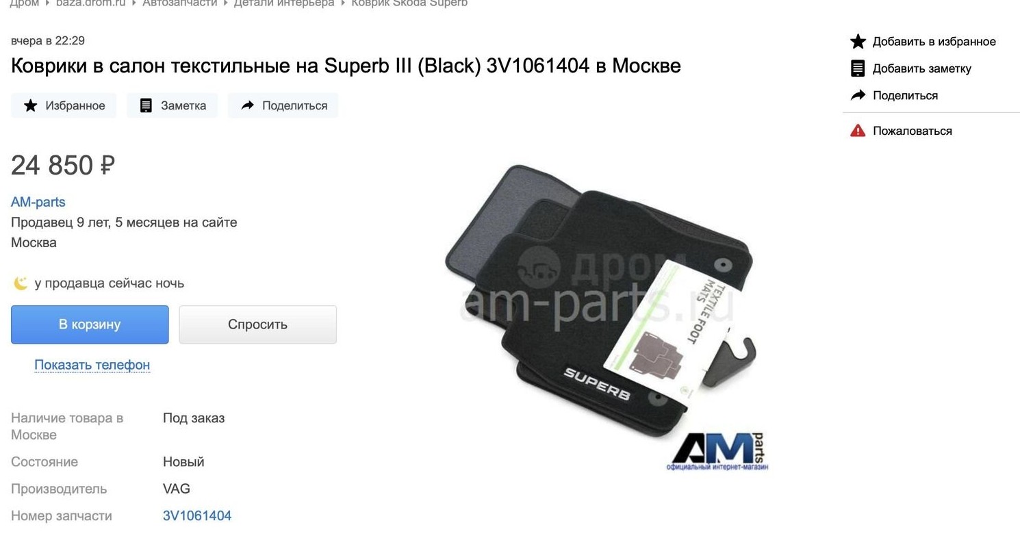 В машине нет никаких ковров и подкрылков. Все покупается отдельно, оригинальные шкодовские аксессуары сейчас достаточно дорогие.