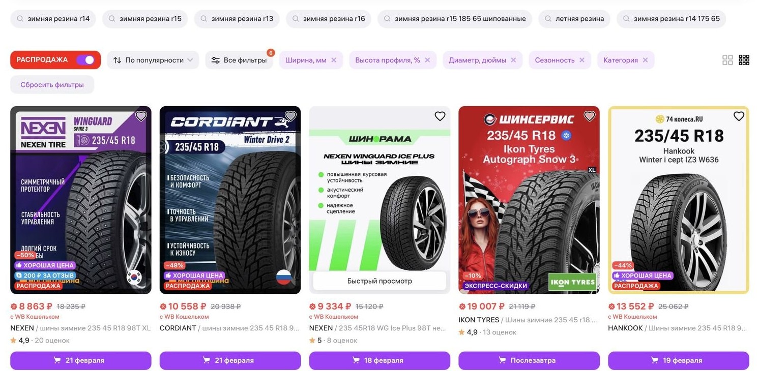 Шины, коврики, а также расходники лучше покупать заранее и на маркетплейсах. Особенно зимние шины — удалось купить комплект из четырех новых корейских фрикционных шин Kumho R18 за 32 000 рублей. В рознице цена значительно выше.