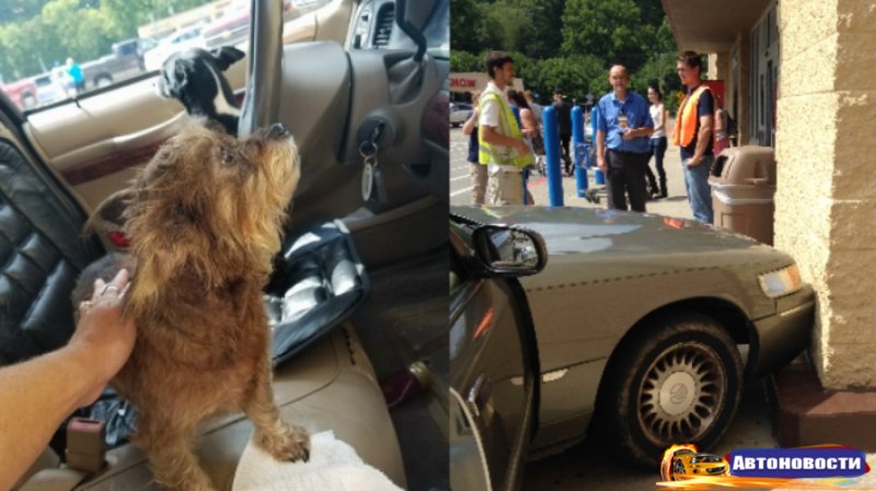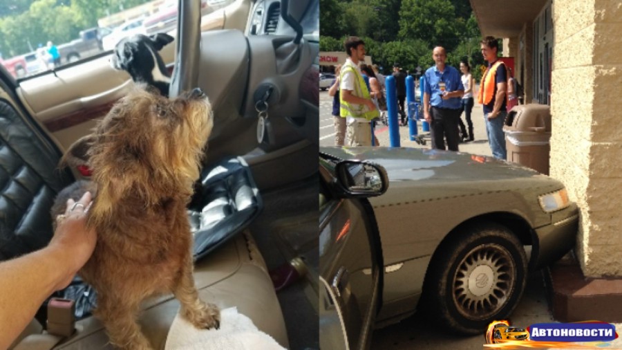 Посетители торгового центра поначалу не поверили своим глазам, увидев в салоне въехавшего в здание автомобиля только двух собак. Инцидент произошел в городе Уэйн, штат Западная Вирджиния. Пожилая женщина оставила автомобиль на парковке торгового центра Walmart с включённым двигателем и кондиционером, чтобы оставшиеся в салоне собаки не страдали от жары. При этом она забыла поставить машину на стояночный тормоз, а когда одна из собак задела селектор коробки переключения передач, седан поехал в сторону здания. К счастью для собак и окружающих, автомобиль ехал медленно и никого не сбил. Транспортному средству и супермаркету был причинён минимальный ущерб, прибывший на место происшествия полицейский рассказал, что после оформления аварии женщина поехала домой вместе с виновниками ДТП. Запись необычного происшествия попала в распоряжение канала WSAZ. По случайному совпадению, через дорогу от торгового центра находится ветеринарная служба. Как рассказала журналистам совладелица учреждения, во избежание подобных случаев владельцам животных следует, по возможности, не брать с собой питомцев, если по пути придётся оставлять их в машине.